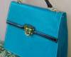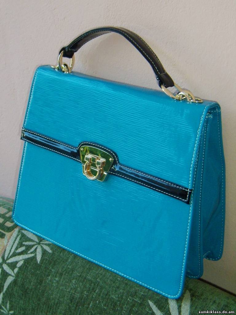 8031 ,сумка-портфель из цветной прессованной кожи,есть длинная ручка, размер (310/270*210*130) цвет бирюзовый
