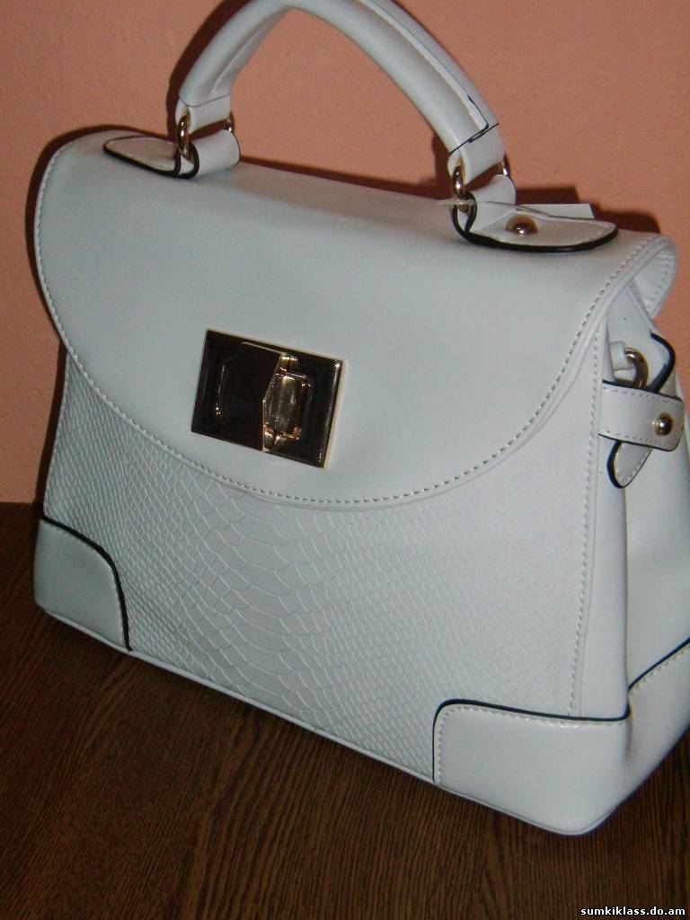 8031 ,сумка-портфель из цветной прессованной кожи,есть длинная ручка, размер (310/270*210*130) цвет белый