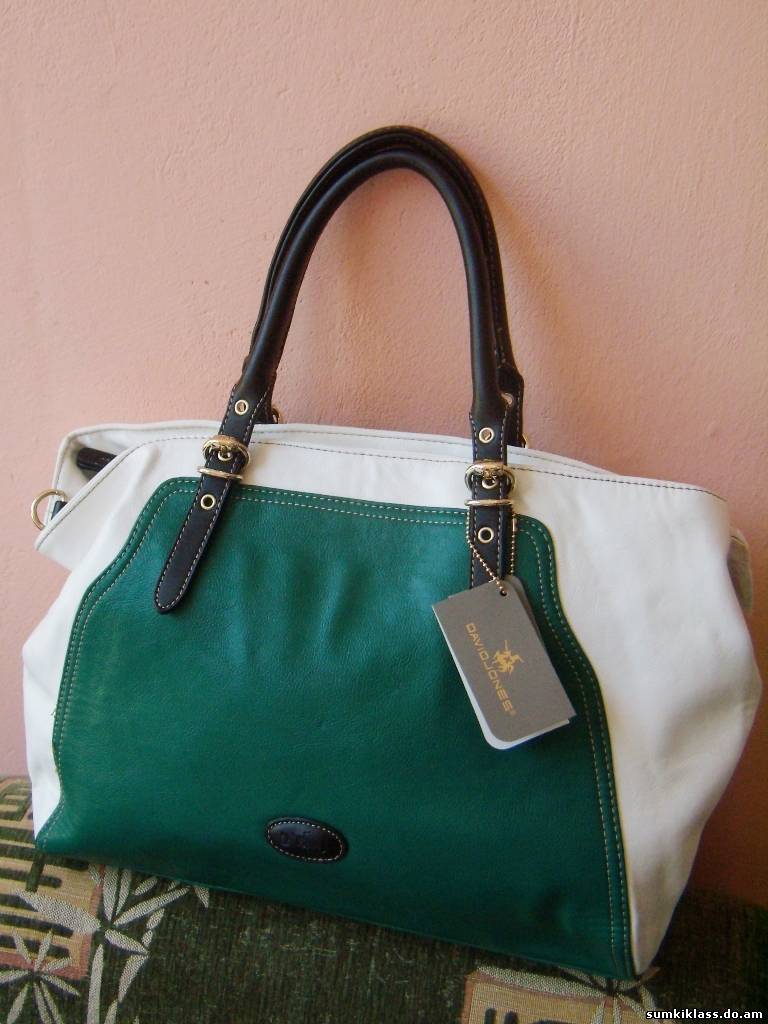 David Jones 2973-2 ,сумка из цветной прессованной кожи,есть длинная ручка, размер (390/440*280*130) цвет белый+зелёны...