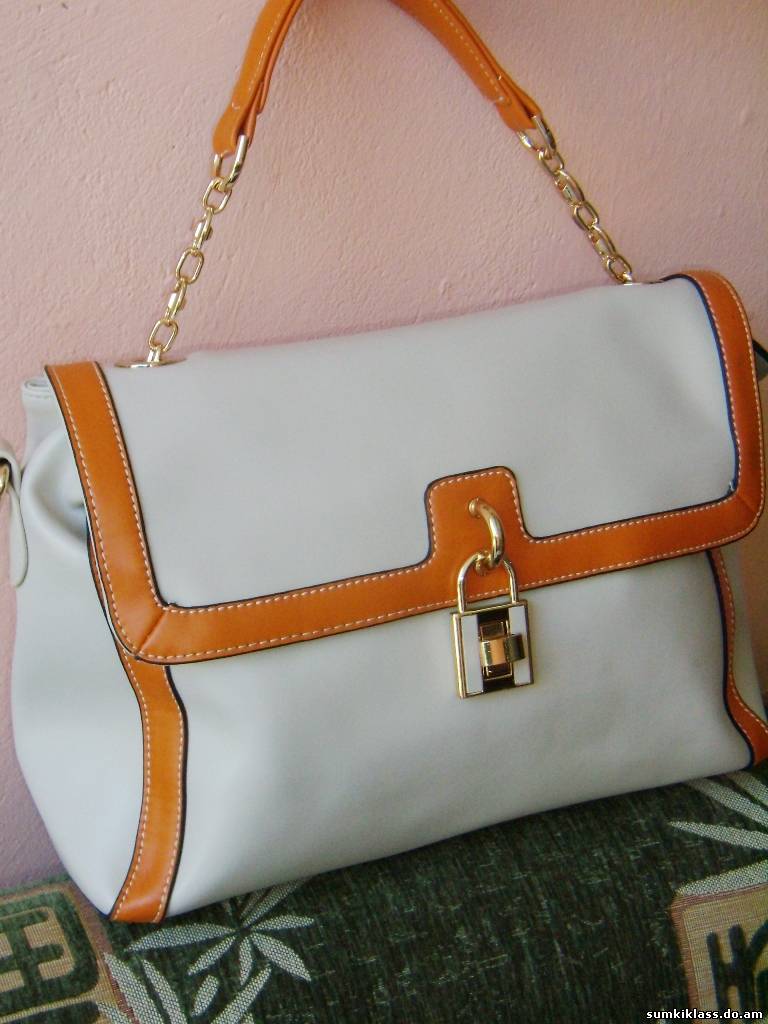 Liza Marco C 5250 , сумка из цветной прессованной кожи , есть длинная ручка, размер (320*240*140) цвет беж+оранж