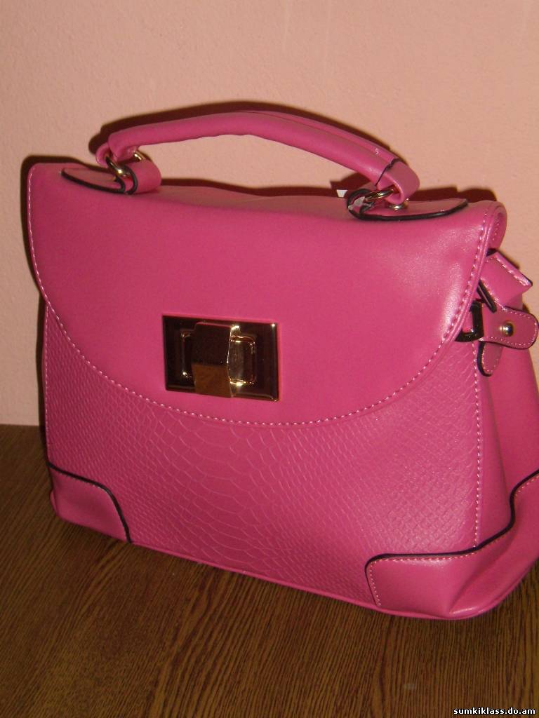 8031 ,сумка-портфель из цветной прессованной кожи,есть длинная ручка, размер (310/270*210*130) цвет розовый