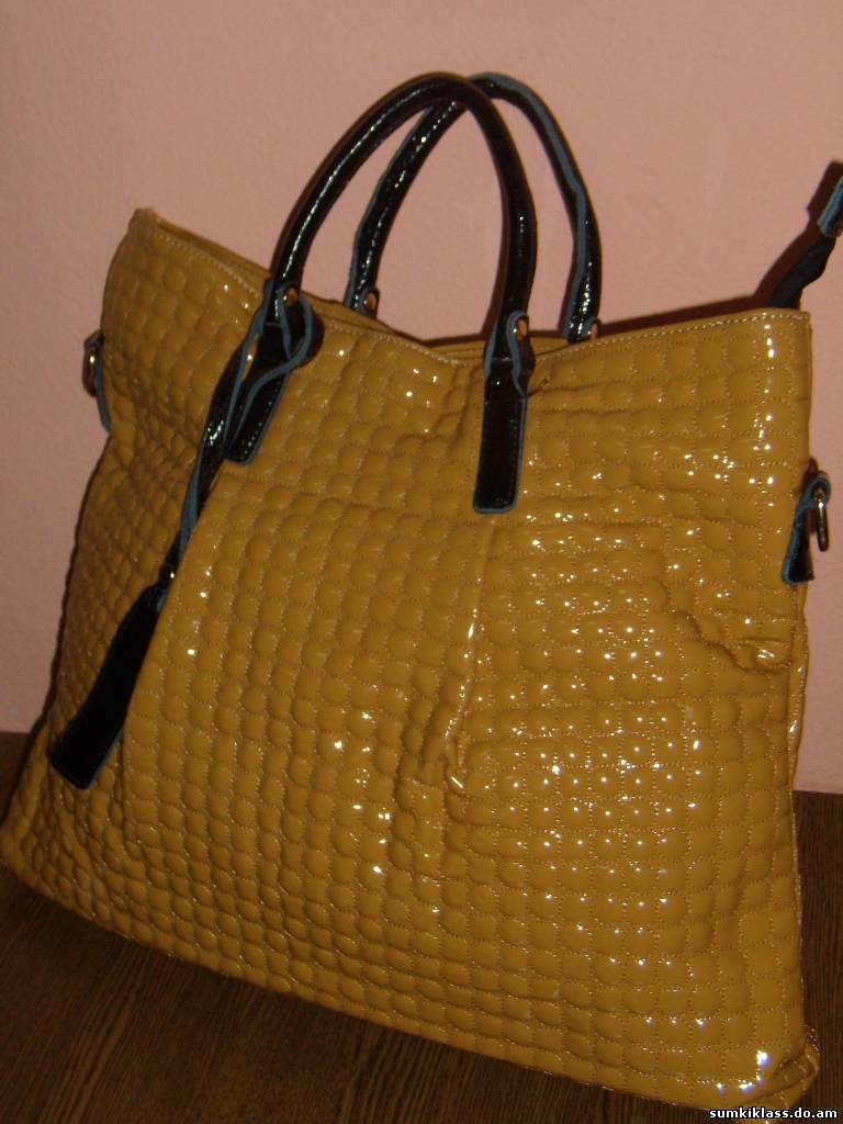 4080 ,сумка из цветного прессованного лака под,, стёганку,, ,есть длинная ручка, размер (430/350*350*100) цвет светло...