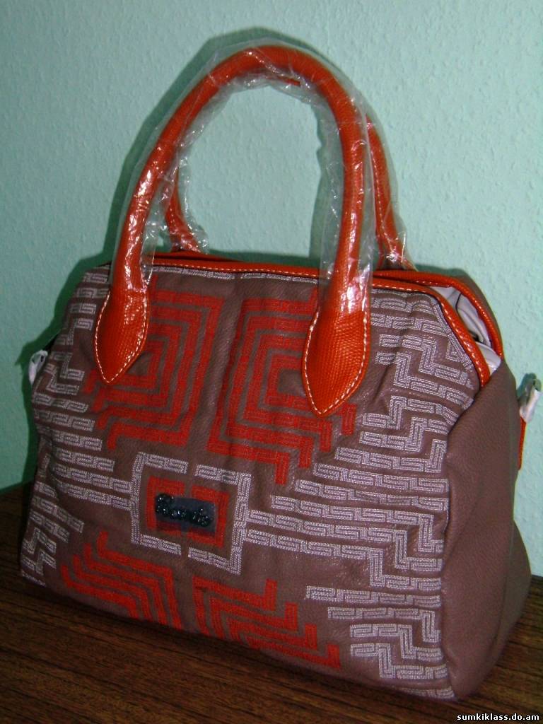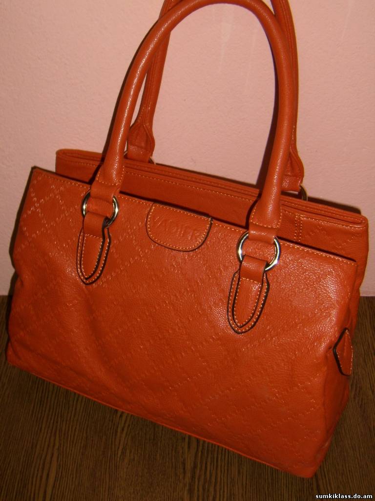 Bornie 80713 ,сумка из цветной прессованной кожи ,3 отделения ,есть длинная ручка, размер (320*220*130), цвет оранж+т...