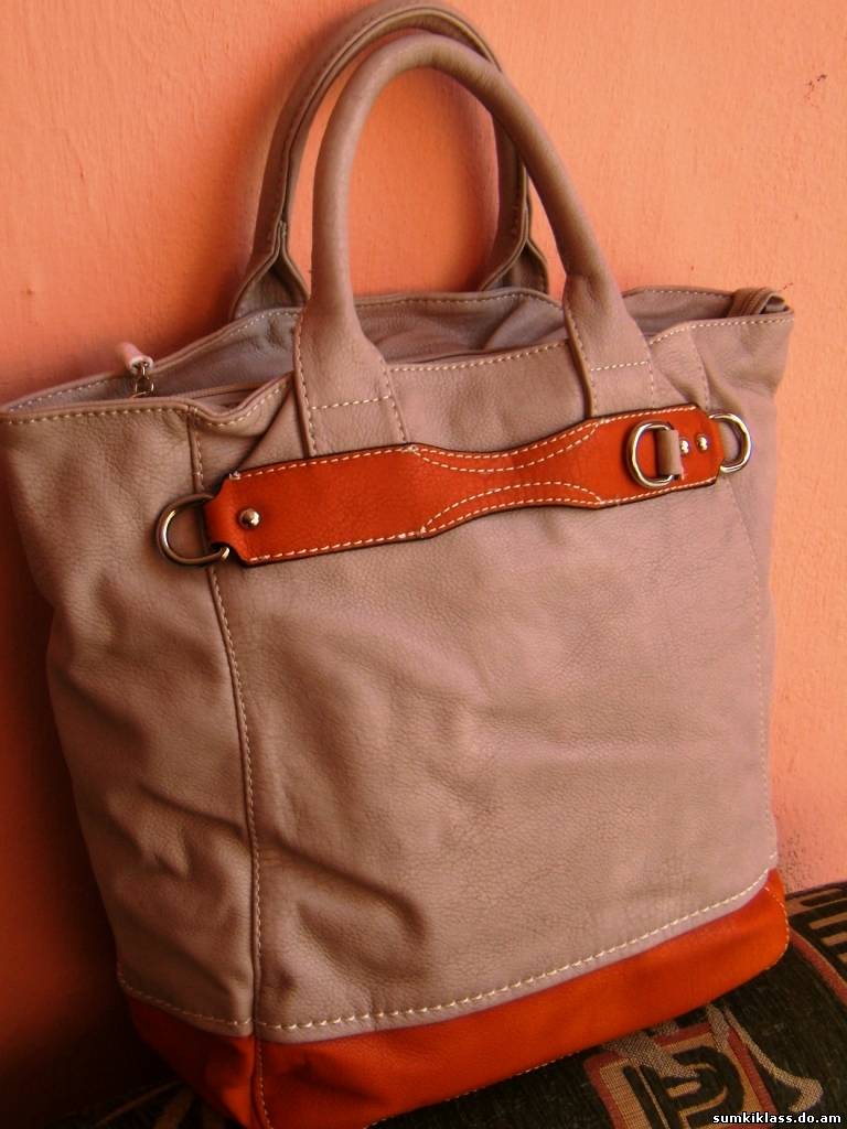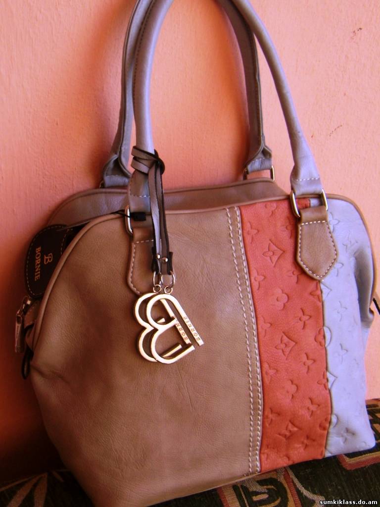Bornie 20180 ,сумка из цветной прессованной кожи ,есть длинная ручка, размер (270/360*320*120), цвет бежевый+корралловый
