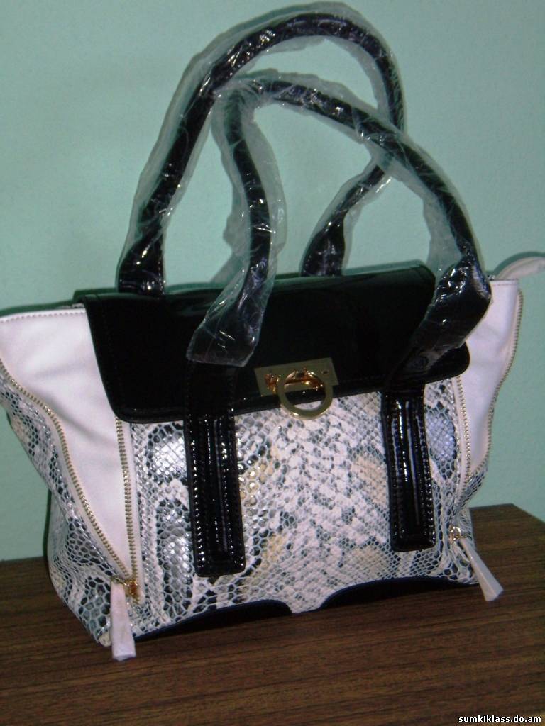 Liza Marco C-5053-6 ,сумка из цветного лака под ,,рептилию,, ,размер (270/380*210*120), цвет белый+чёрный