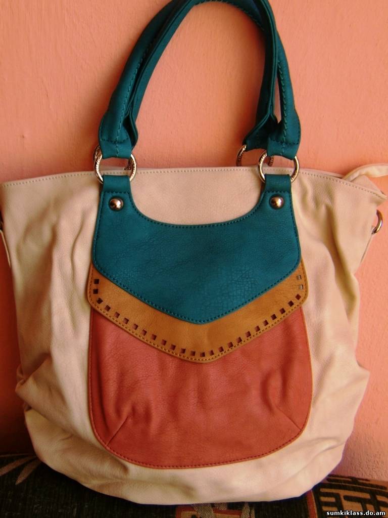 Bornie 52397-1 ,сумка из цветной прессованной кожи ,есть длинная ручка, размер (350*350*100), цвет кремовый+бирюзовый...