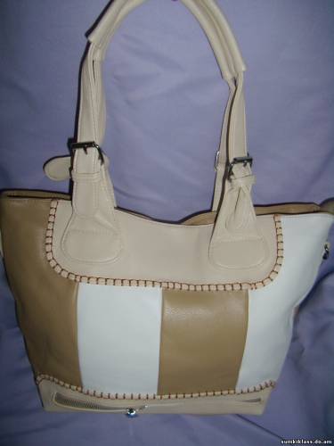 А-48, сумка из цветной прессованной кожи,размер (260/400*250*100), цвет кремовый+белый+беж
