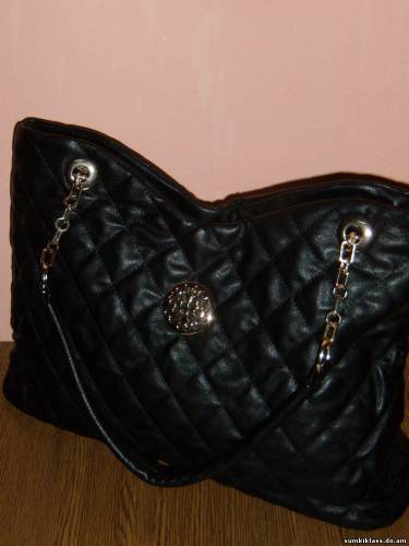 Н 8114 ,сумка из прессованной кожи под ,,стёганку,,, ручки-цепочки, размер (350*320*130), цвет чёрный