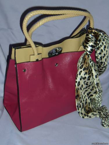 825, сумка из цветной прессованной кожи,размер (300*270*160), цвет сливовый+беж