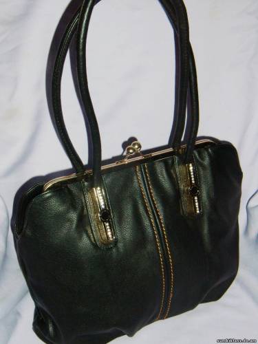 9043 ,сумка-поцелуй из прессованной кожи , 2 длиные ручки , размер (360*300*160) цвет черный