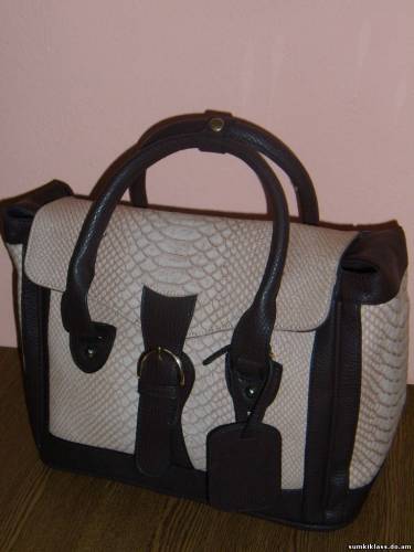 Massi К 8808 ,сумка из цветной прессованной кожи под ,,рептилию,,, размер (310/350*250*180) цвет беж+шоколад