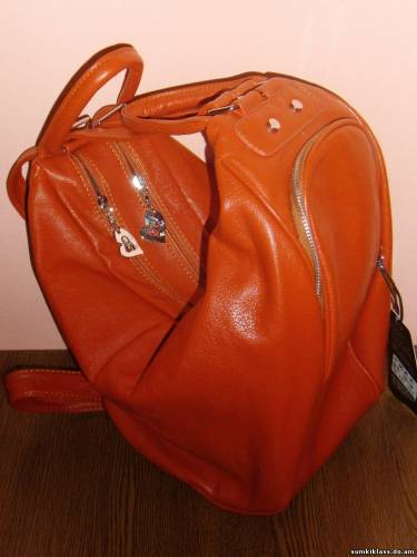 0615 ,сумка-рюкзак из цветной прессованной кожи , 2 отделения, размер (230/370*250*180) цвет оранж