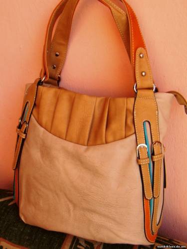 Bornie 52538 S ,сумка из цветной прессованной кожи ,есть длинная ручка, размер (330*320*100), цвет абрикосовый+рыжий+оранж+бирюэа