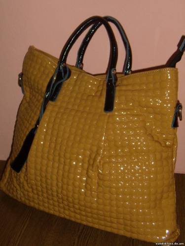 4080 ,сумка из цветного прессованного лака под,, стёганку,, ,есть длинная ручка, размер (430/350*350*100) цвет светло-коричневый+черный