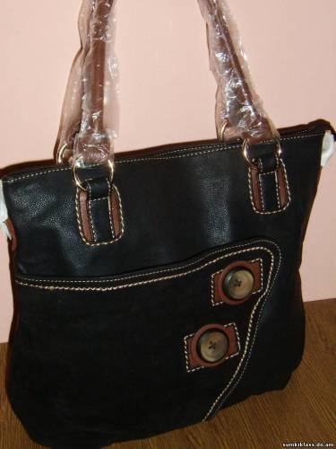 Bornie D 8001-1 ,сумка из прессованной кожи с армированной строчкой и натуральной замши, длинная ручка, размер (380*300*130) , цвет черный+кирпичный