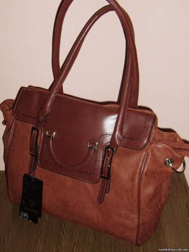 Bornie С 847-8471 ,сумка из прессованной кожи с армированной строчкой и глянцевых вставок, есть длинная ручка, размер (400*270*140) , цвет кирпичный
