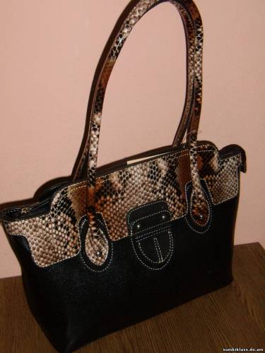 Tosoko АFА 2543-172373 ,сумка в жестком каркасе из прессованной кожи с армированной строчкой и лаковых вставок под ,, питона,,, есть длинная ручка, размер (300/370*230*120) , цвет черный