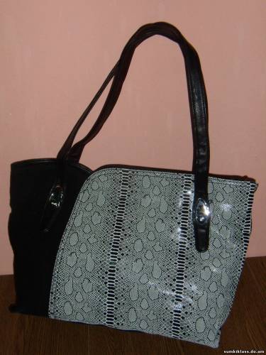 Farfalla R 54273-2 , сумка из натуральной кожи под,,питона,,натуральной замши и прессованной кожи, размер (340*250*140) цвет чёрный+темно-серый+светло-серый