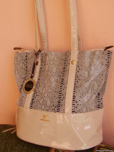 Velina Fabbiano VF 67383 , сумка из натуральной кожи под ,, питона,, и прессованной кожи, 3 отделения, размер (300*300*200) ,цвет беж