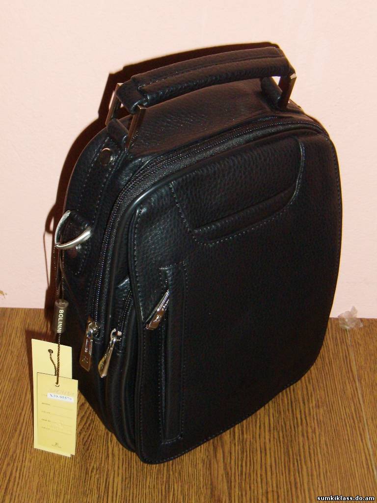 Bolinni Х39- 25098 , сумка-портфель формат А-4 из прессованной кожи, размер ( 380*280*60) цвет (чёрный, коричневый)