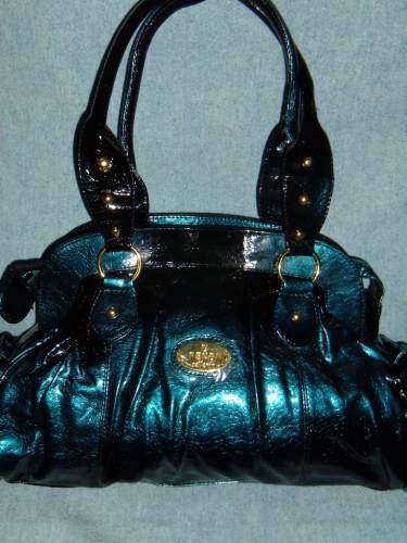 F-6127, сумка из прессованного лака под рептилию, есть длинная ручка,цвет (чёрный+бирюза), размер 400*200*180