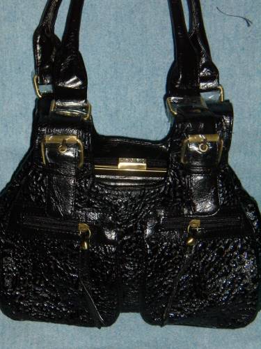 К 89011, сумка-поцелуй из прессованной глянцевой кожи и лака под рептилию,цвет (черный), 3 отделения, размер 270*160*100