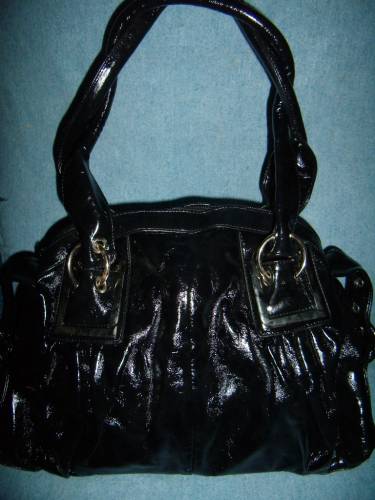 08259 ,сумка прессованной глянцевой кожи , цвет (черный), размер 350*250*130