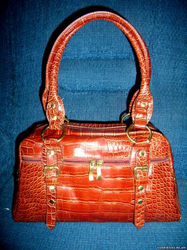 0819, сумка из прессованной глянцевой кожи под ,,рептилию,,, цвет (рыжий) , размер 320*180*120