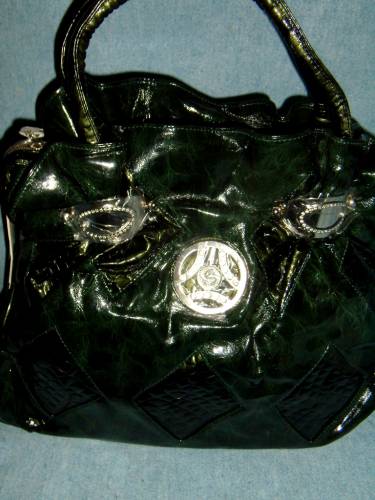 12107 ,сумка из прессованного глянцевого лака , цвет (тёмно-зеленый), размер 350*320*150