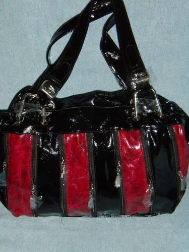 08215 ,сумка из прессованного глянцевого лака , цвет (чёрный+бордо), размер 340*230*110