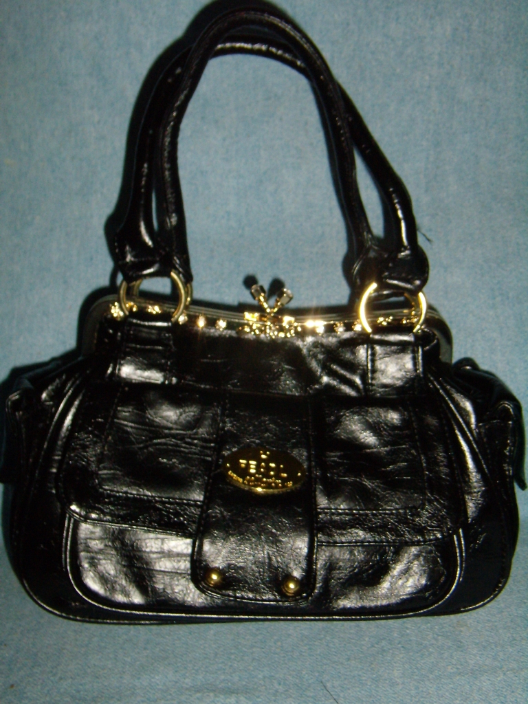 674-В , сумка из прессованного глянцевого лака ,цвет (черный ), размер 400*300*100