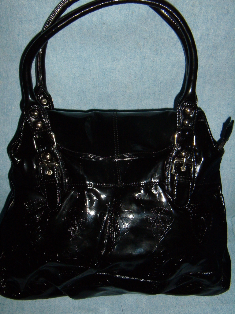 11388 ,сумка прессованной глянцевой кожи ,цвет (черный), размер 260*130*90