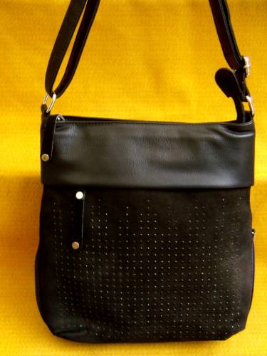 20434-1 сумка из прессованной кожи и натуральной замши+чёрные стразы, длинная ручка, расширяющееся дно, размер 280*300*80/120