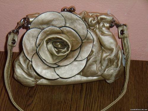0993 ,сумочка-клатч из цветной прессованной кожи с цветком ,есть длинная ручка, размер (180*120*80) цвет золото