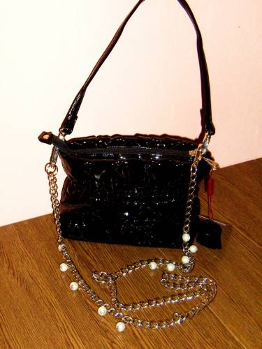 Farfalla R 53819, клатч из лака со строчками под,,стёганку,., длинная цепочка с жемчужными бусинками+ короткая ручка, размер 200*160*100