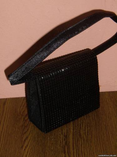 LP 007 , сумочка-клатч из прессованной кожи со стразами, ,есть длинная ручка, размер (130*100*40) цвет черный