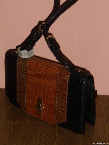 Velina Fabbiano VF 67128-2 ,клатч в жестком каркасе из прессованной кожи под ,,рептилию,,,размер (260*160*80 )цвет чёрный+коричневый+рыжий