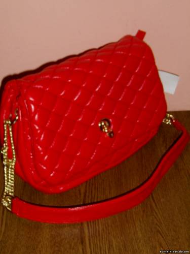 9070 , сумка-клатч из прессованной кожи под ,,стёганку,.3 отделения ,есть длинная ручка, размер (300*180*100) цвет красный