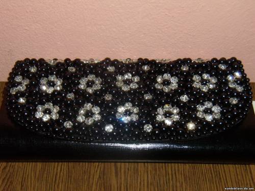 1181 PU , клатч из прессованной глянцевой кожи, страз и черных бус, размер (250*100*30)