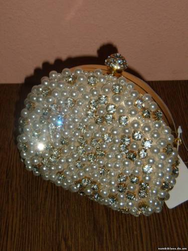 2888-1 , клатч из текстиля под парчу, страз и исскуственного жемчуга , размер (100*100*50) цвет золото