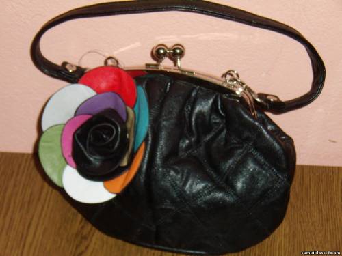 0996 ,сумочка-клатч из цветной прессованной кожи с цветком ,есть длинная ручка, размер (210*150*80) цвет черный
