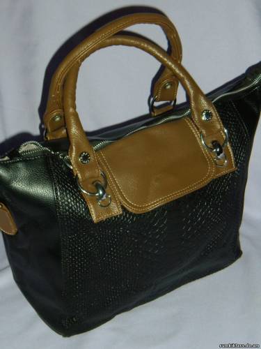 9005 ,сумка из прессованной кожи с элементами под ,,рептилию,,, размер (300/380*280*140) ,цвет черный+коричневый