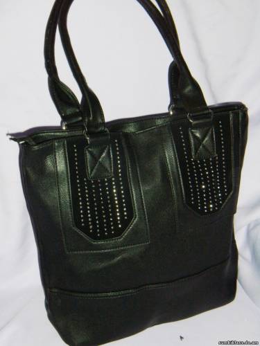 2085 ,сумка из прессованной кожи со вставками замши и страз , внутри 2 отделения, размер (300*320*140) ,цвет черный
